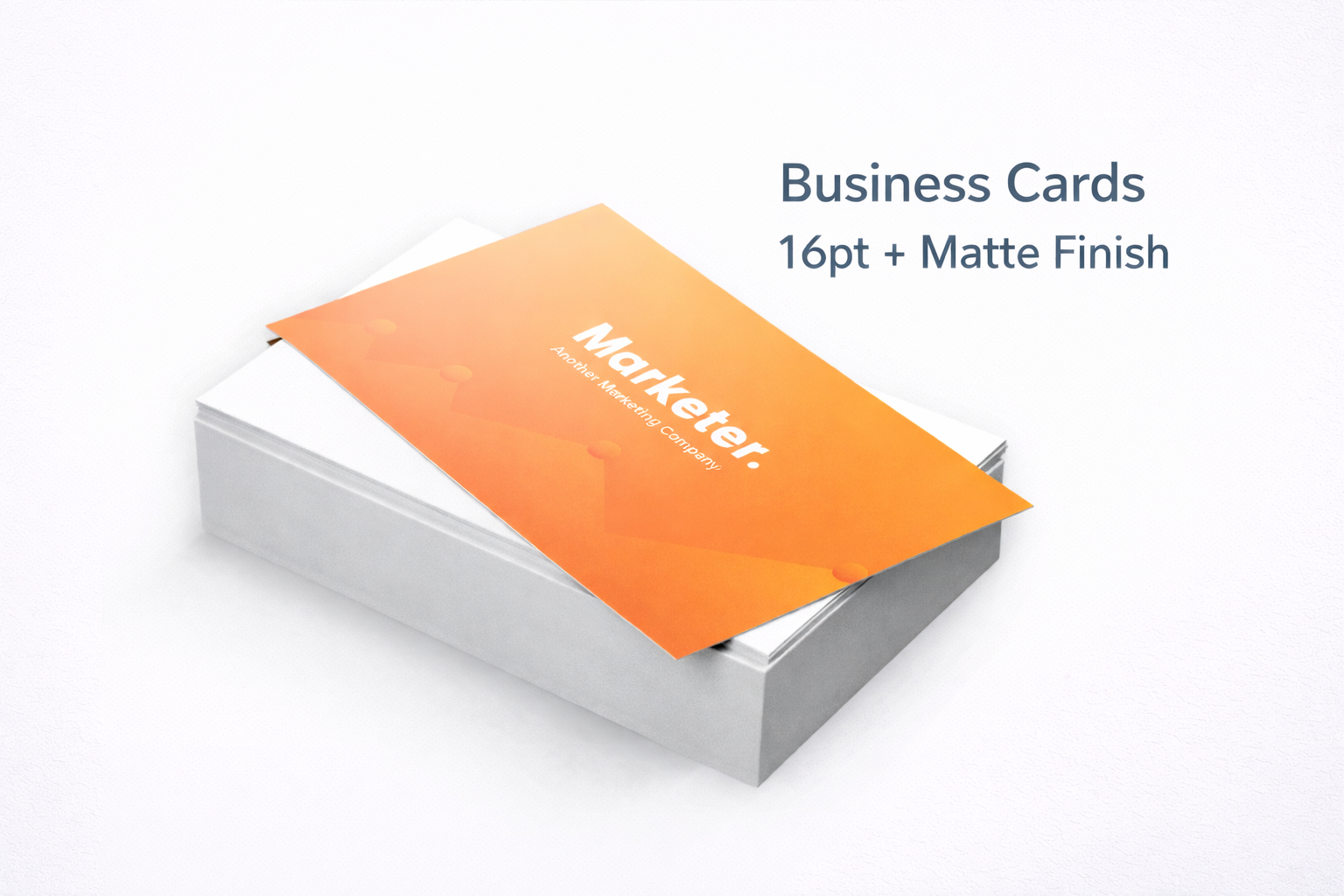 - Business Cards paper type: 16PT + Matte Finish (95 Bright 16pt C2S) / Full color CMYK: 1 sided (4/0), or 2 sided (4/4).