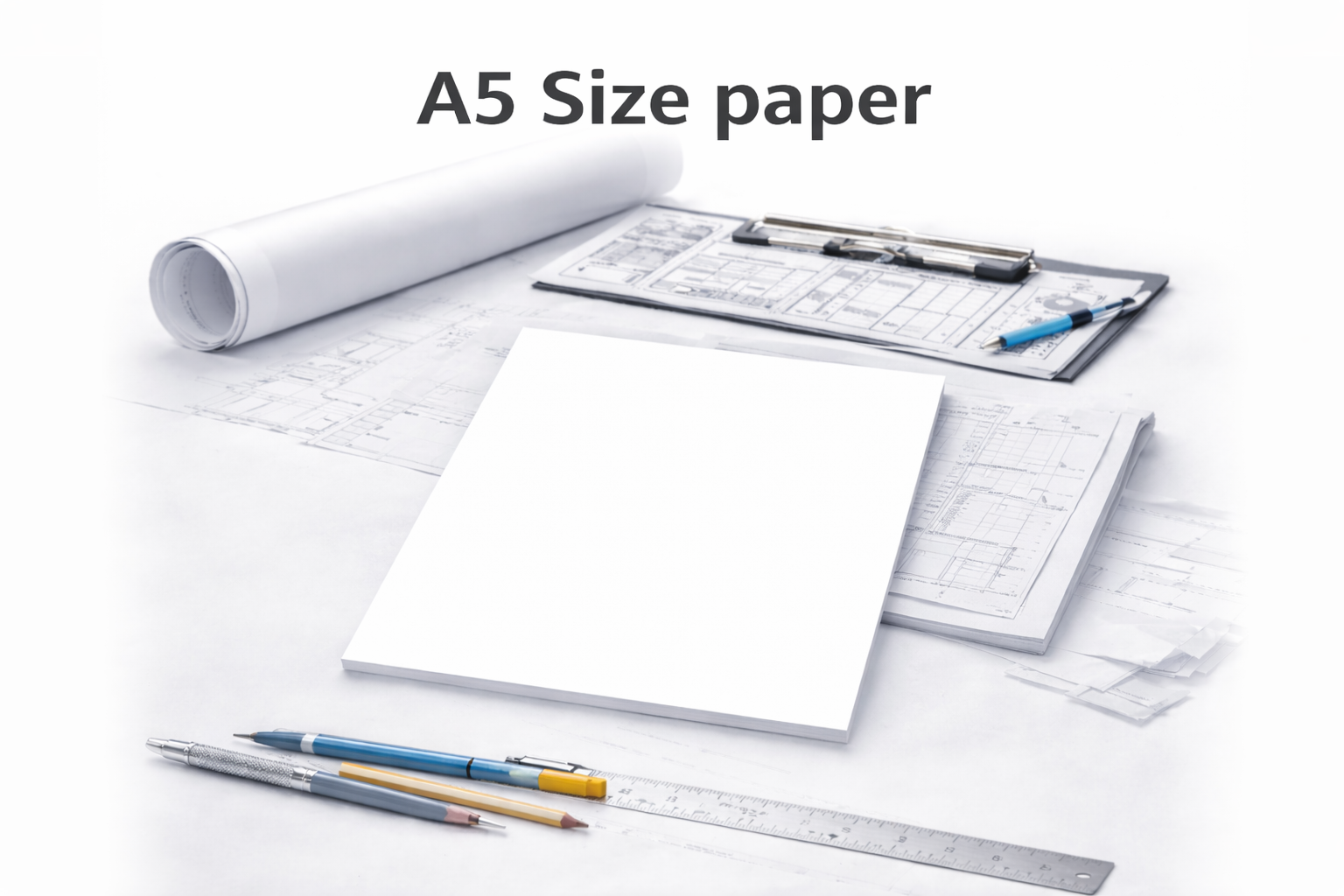 - A5 paper size = 5.83" x 8.27 ( 148 x 210 mm )