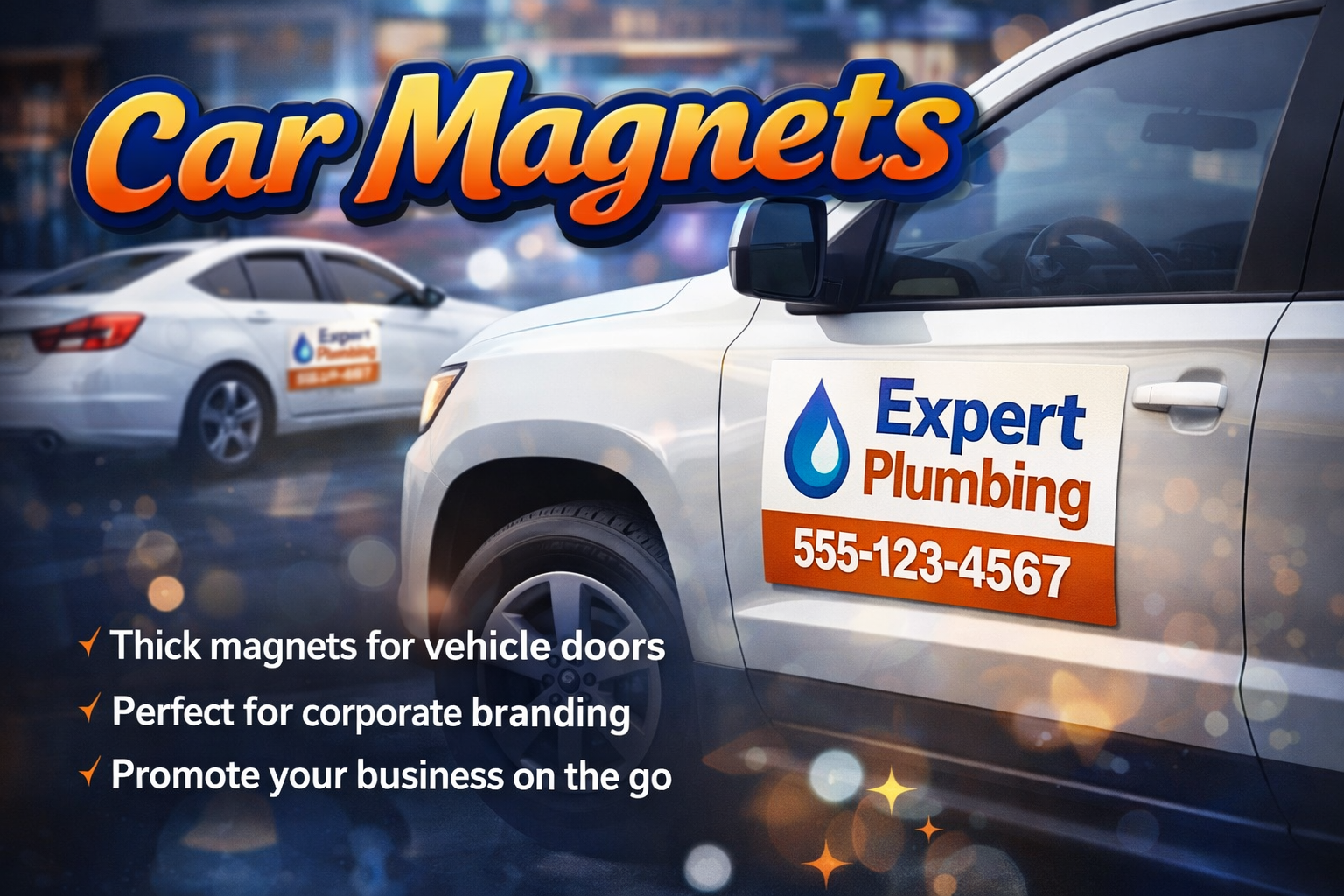 - 30mil Magnet : A thick magnet that can be placed on vehicle doors to add corporate branding.
